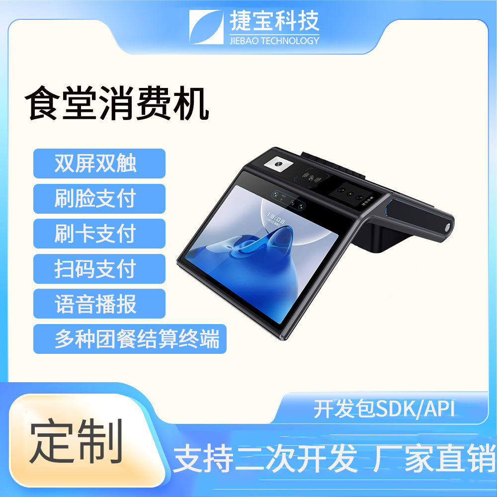 捷寶科技是國內最早推出基于Android系統智能硬件的廠家之一。產品形態(tài)涵蓋手持、臺式、立式、掛式、柜式、單屏、雙屏;功能上圍繞NFC識別、條碼識別、生物識別,AI識別等技術大類,開發(fā)出可識別CPU卡、M1卡、射頻卡、二代身份證、社???、一維條碼掃描、掃碼支付、指紋識別、人臉識別、掌靜脈識別、虹膜識別、AI菜品識別、智能語音識別等功能的各類產品。